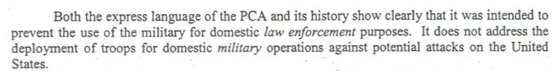 Long-standing laws that were enacted precisely to limit the use of the U.S. military inside the U.S. and against U.S. citizens — such as the Posse Comitatus Act — have no application: