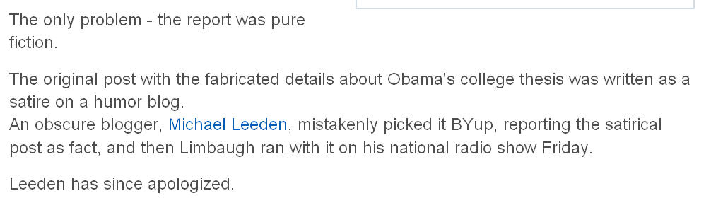 If you were to wearily search The Goog this morning and entered “Michael Leeden thesis” after hearing that Rush, Joe Klein and the War-Crimes Apologists and Wife-Beaters at PJ’s Media were touting some Obama Columbia Thesis exerpts uncovered by some intrepid truth-seeker.
